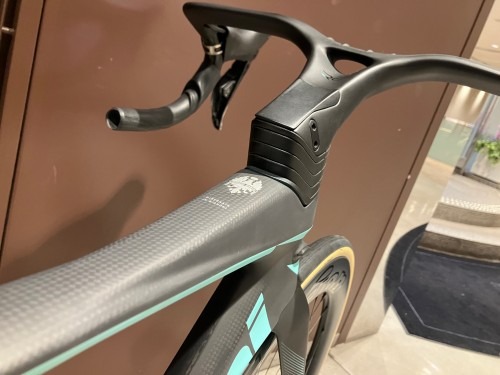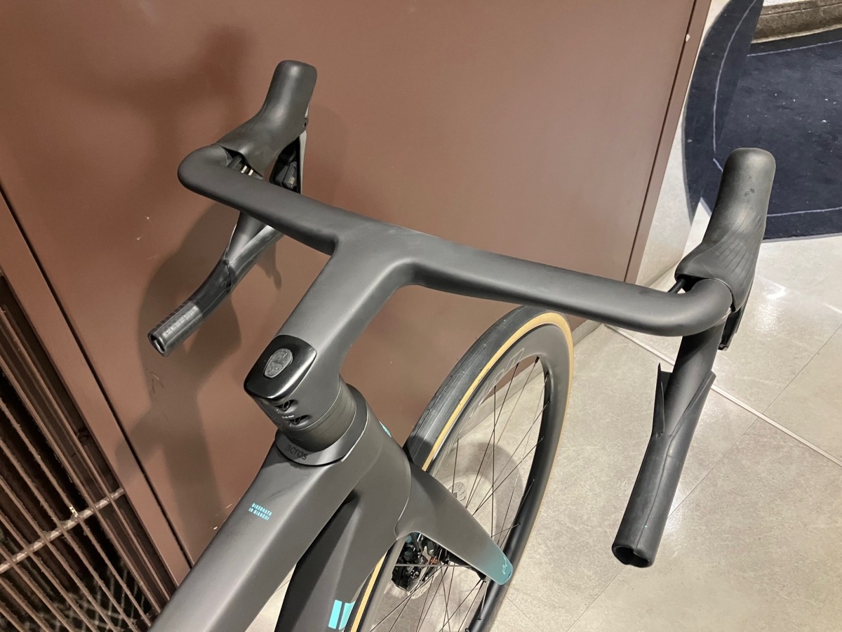 私も先日購入した専用の一体型ハンドルを採用。ケーブル類を完全内装でき、これがイイんです。BianchiのACROS ICR ヘッドセットが採用されている車種に装備可能となっています。ボルトや結合部の段差がない滑らかな流線型は、空気抵抗を削減します。