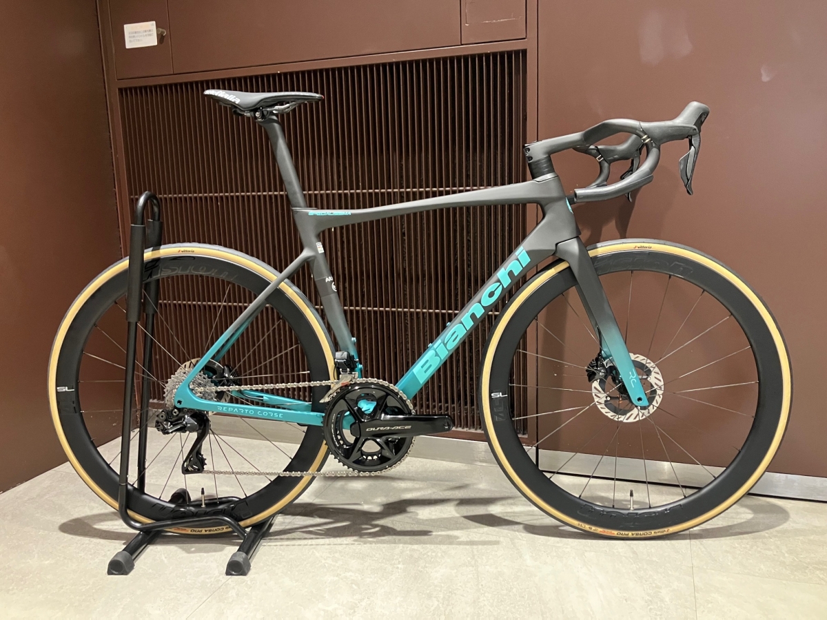 ホイールやサドルは、Bianchiのレーシング部門Reparto Corseのハイエンド品が奢られ、Bianchi大好き仕様になっております。
