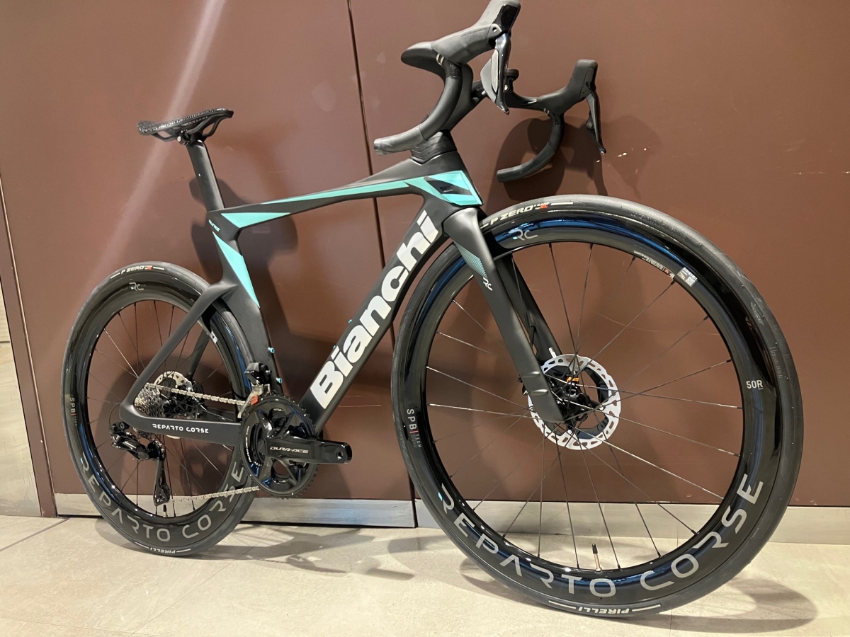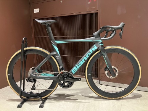 まずはBianchiの代表的モデル、OLTREのハイエンドモデル、OLTRE RCシリーズです。現在、チームレプリカモデルと、特別価格の完成車という2種類を在庫しています。