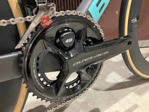 SHIMANO純正ではなく4iiiiのパワーメーターを採用しているところがレプリカモデル、Bianchiバイクらしさがあっていいですね。