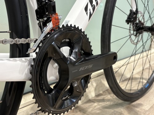 コンポーネントは105機械式が付属しています。ギアの選択肢が多く快適なライドに繋げられますし、扱いやすくレースからサイクリングまで使えます。ワイヤーも内装となっていますので、見た目もかなりスッキリしています!