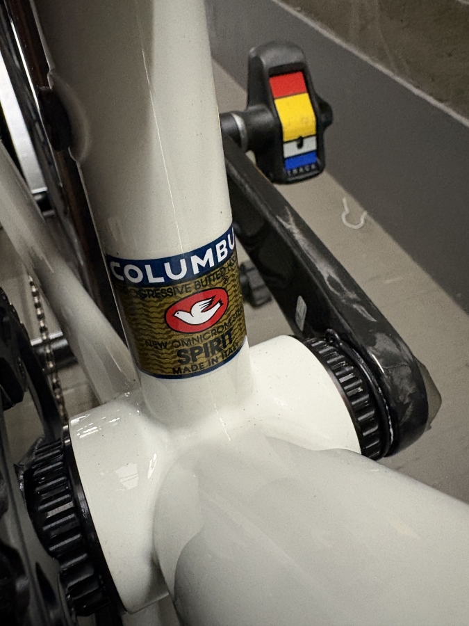 各所にはパイプやフォークの製造元であるコロンバス社の象徴である鳩のロゴがあしらわれています。