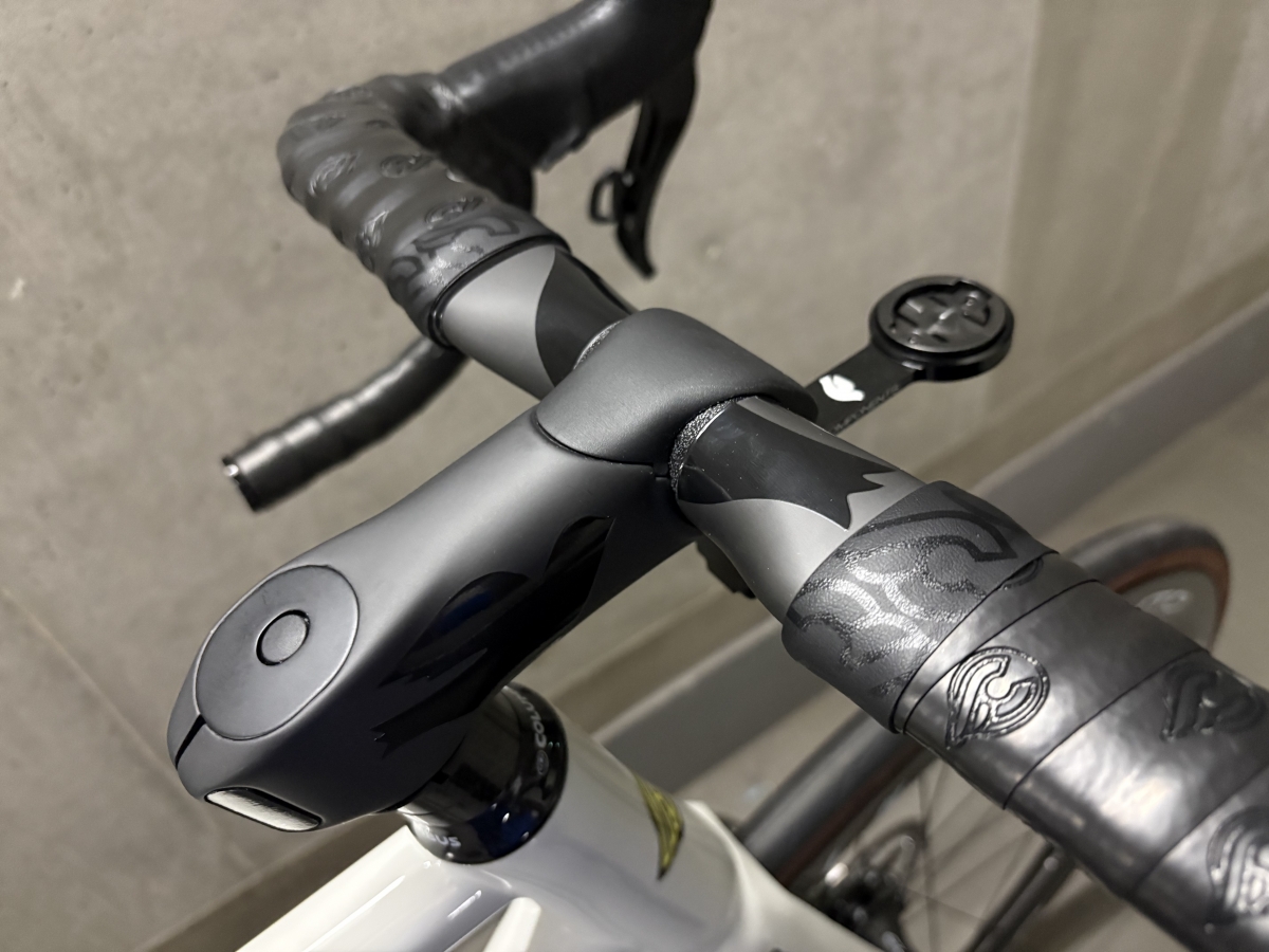 ステムやハンドルバーはコロンバスの物を使用しています。こちらにも鳩のマークがあしらわれています。コクピット周りも同ブランドで揃えることで統一感のある仕上がりになっております。