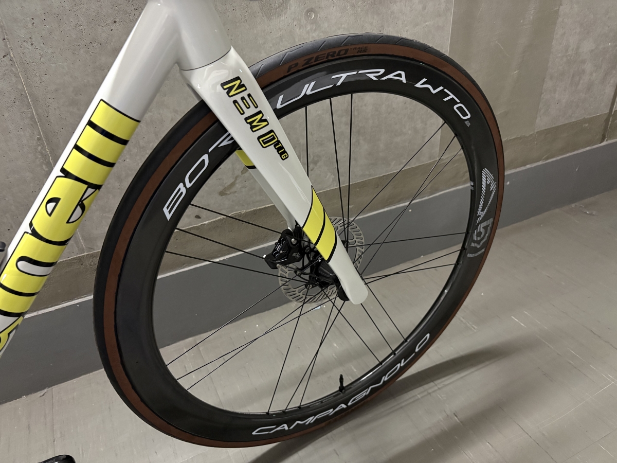 ホイールはBORA ULTRA WTO 45を選択しています。抵抗の少ないCULTベアリングが採用されているスパルタンなレーシングホイールです。脚周りにも一切の妥協はありません。