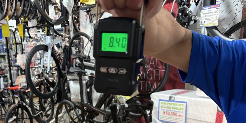 写真の状態で重量は8.4kgでした。クロモリロードであることを考えると優秀な重量ではないでしょうか。