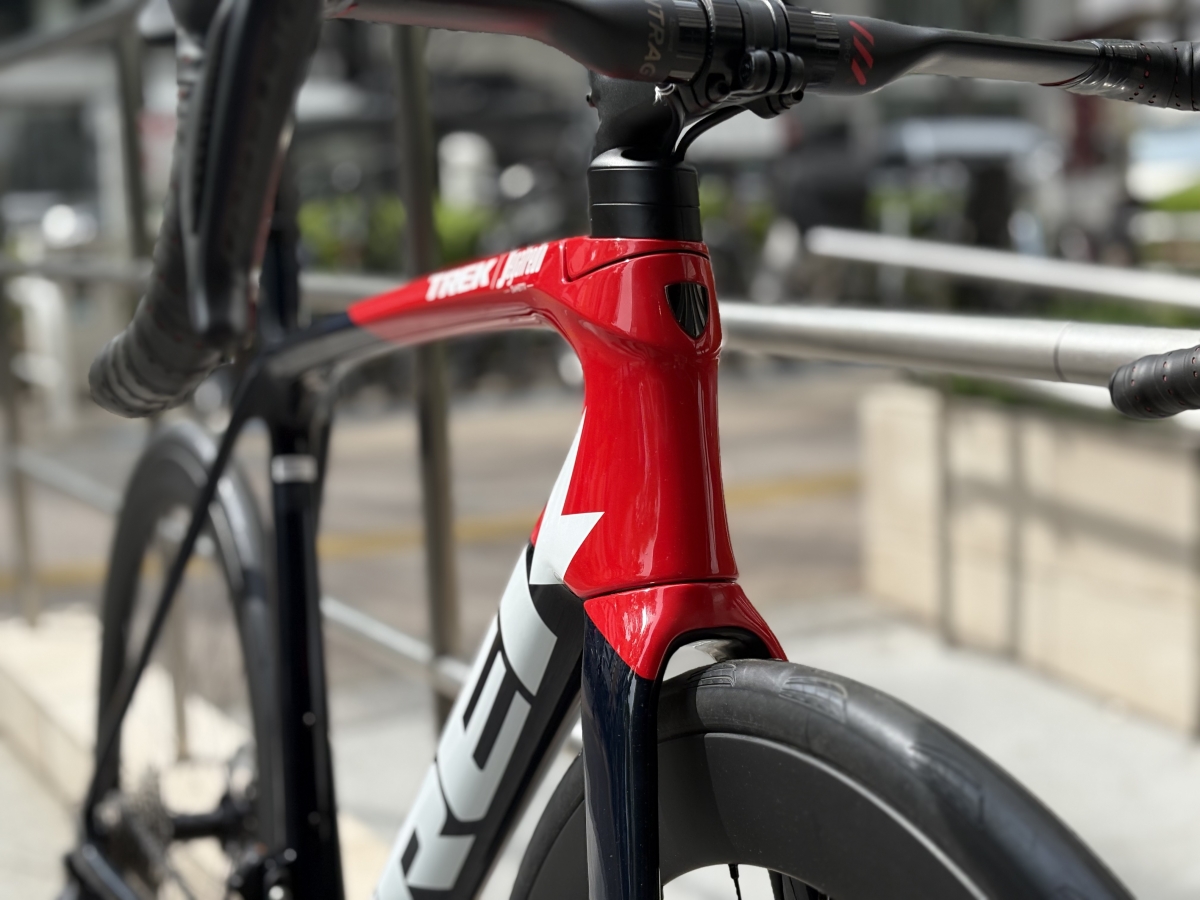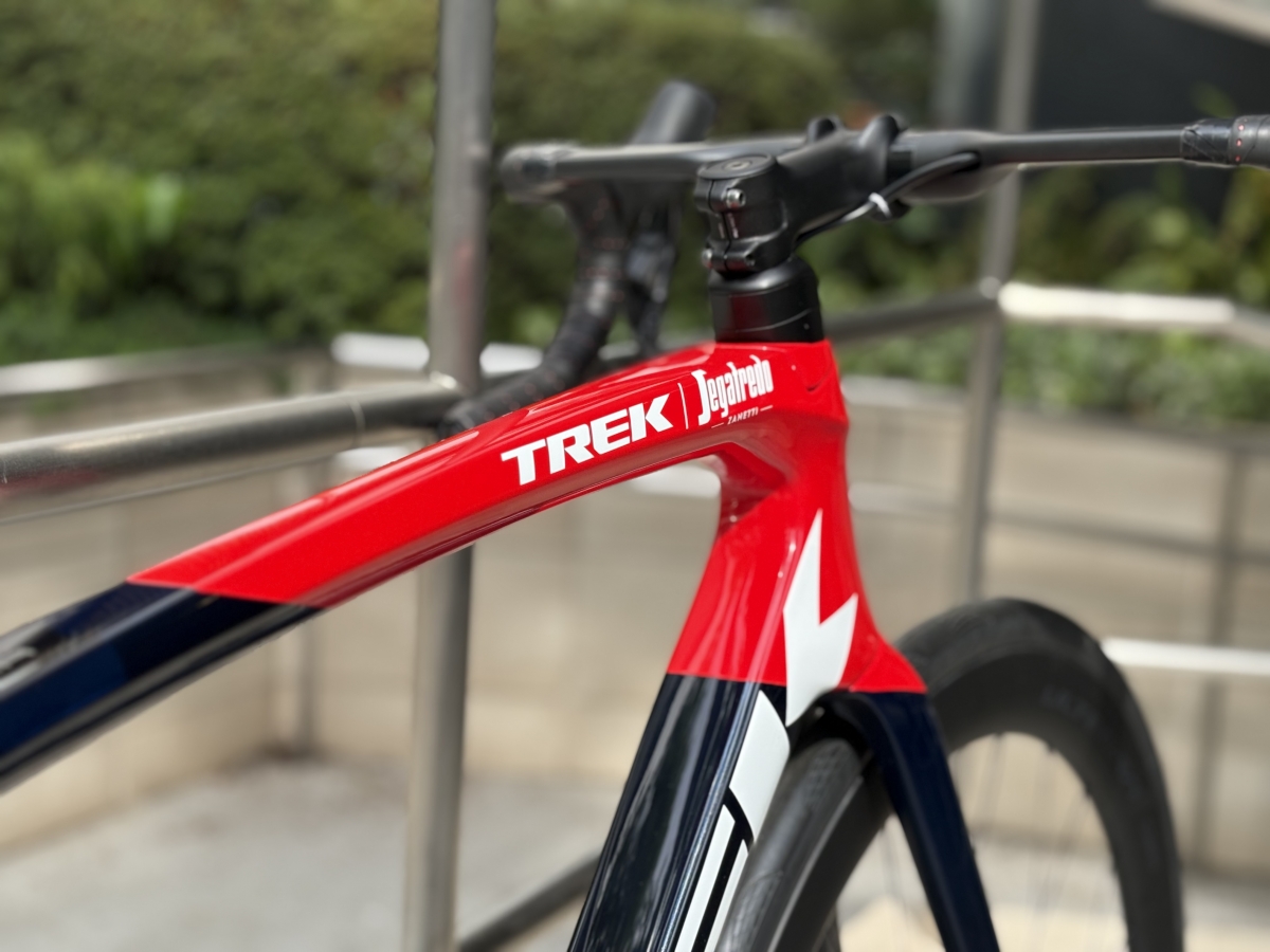 以前のブログで書かせて頂いきましたが、このバイクはTrek が出す超軽量のフラッグシップモデルとなります。ヒルクライム性能とレース性能を重視した設計で、プロレースでも使用されるトップクラスのバイクとなっています!ツールドフランスなどのプロレースでの使用を前提に設計され、単なる軽量バイクではなく空力性能も意識も意識してワンデーレースやツアーレースでもこの一台でこなせられるようなバイクになっています!実際国内上位レースでも使っている選手をみかk