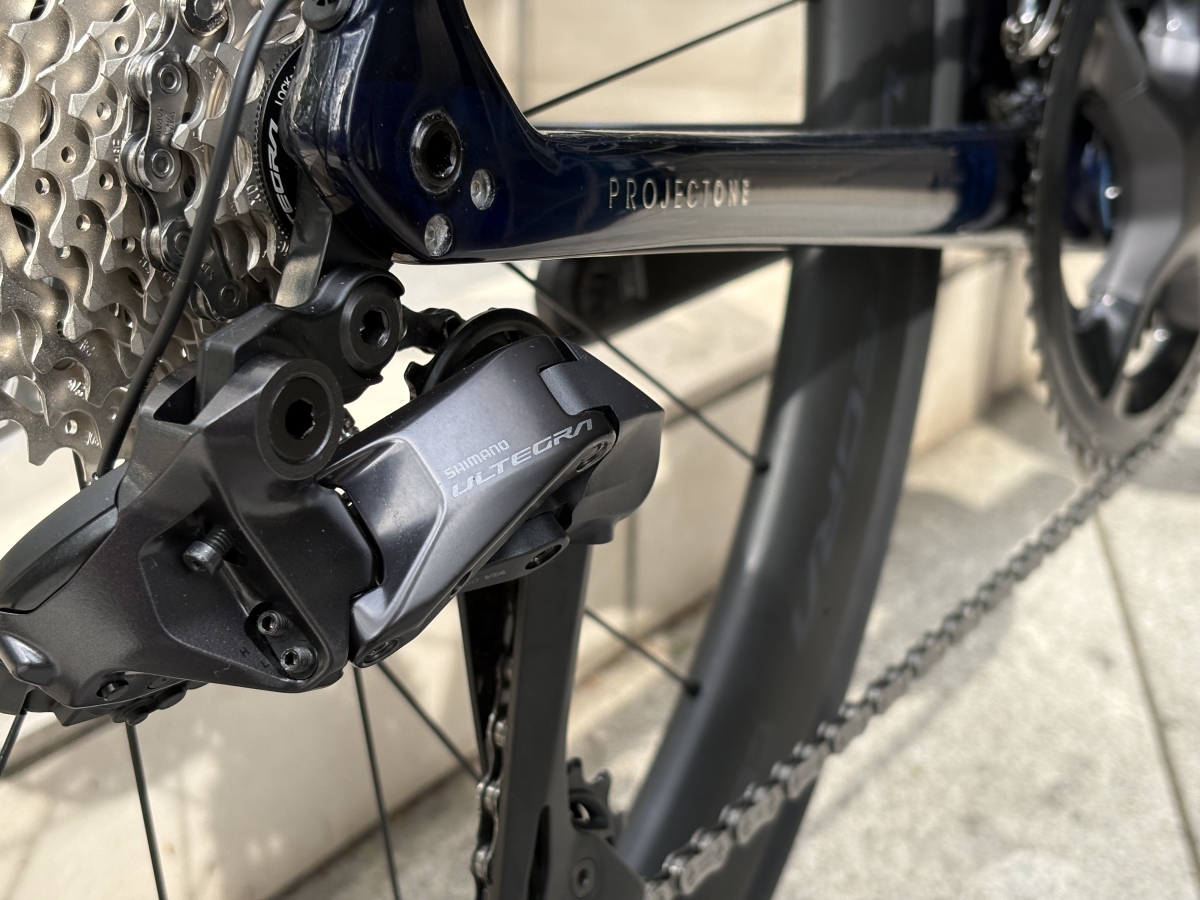 コンポーネントはアルテグラDi2が付属しまして、素早いレスポンスをもつパーツなため、レースでもサイクリングでも楽な変速が可能で、レバーの頭にもスイッチがつき、エアロポジションをとっているときも変速がしやすくなっています!実際わたしもその仕様のコンポを使っていますが大半の変速が頭のボタンなので人によるとは思いますがかなり重宝します!変速以外にもサイコンの画面操作にも割り当てられたりもするのでかなり便利です!(対応機種あり)