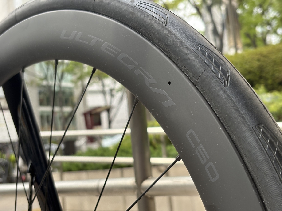 ホイールはULTEGRA WH-R8170-C50が付属します!シマノのミドルグレードカーボンホイールに位置するULTEGRA C50は、リムハイトが50mmと平坦でも上りでも使いやすい仕様のホイールとなりまして、上位モデルDURA-ACEと同形状のリムにより高い空力性能を持ちつつ、重量と剛性のバランスにも優れています。チューブレス対応やワイドリム設計で快適性も高く、エモンダとの相性も良いものとなっています!
