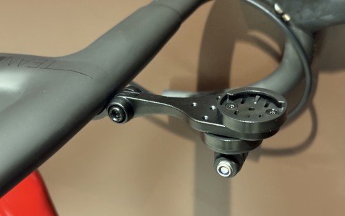 ハンドルはMERIDA TEAM SL 1 ピースコックピットがついています!見た目もスッキリして綺麗ですし、なによりもつけることによりバイク全体の剛性アップ、空力性能の向上に繋がっていますので、レース等でも使いやすいと思います!