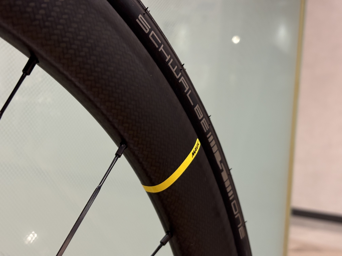 ホイールはマビック コスミックSl45が付属し、45mmの絶妙なハイトで平坦も登りもバランスよく走ることができます!セカンドグレードのホイールとなっています。高剛性のSLRに比べて柔らかめなのでフレームとマッチして乗り心地が向上しています!