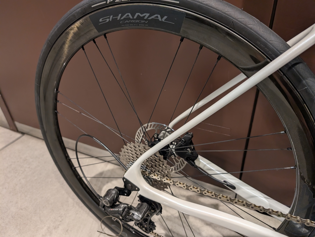 ホイールはCampagnolo SHAMAL CARBONがアッセンブルされており快適性や効率よく出力して長く走ることに長けたホイールです。Campagnoloホイールでお馴染みのG3スポークパターンなども採用されており見た目も美しきなっています。