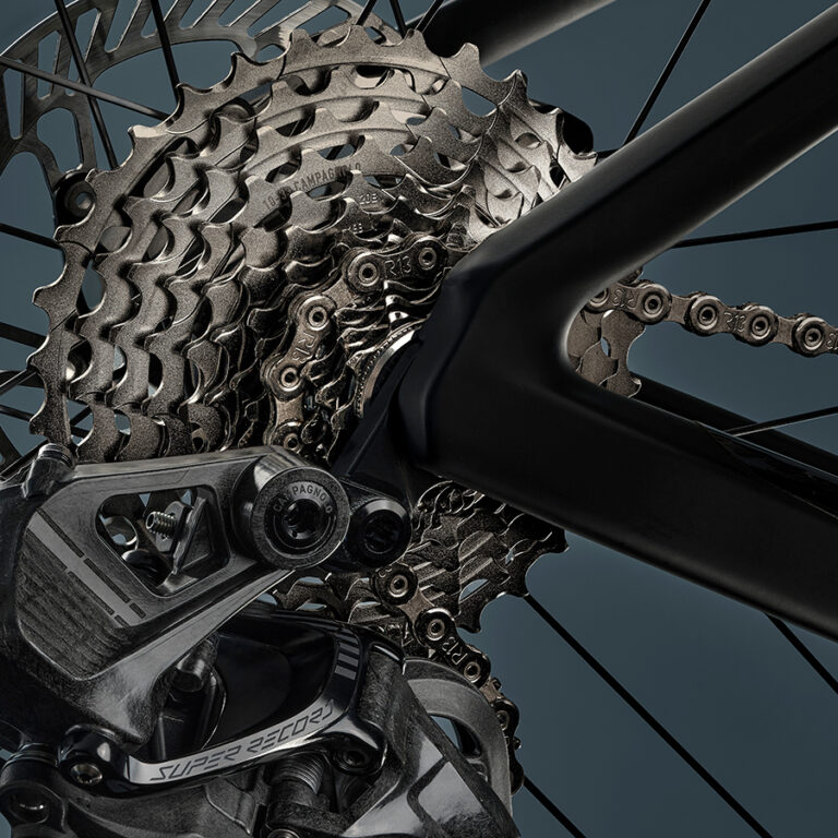 3大ブランド初の2×13速のグループセットで、美しいだけでなく性能もブラッシュアップしました。セカンドグレードにRecordがありますが、Super Recordシリーズのモデルチェンジのスパンが短すぎて、最近は影が薄くなっています。。。機械式変速システムのサードグレード Chorus コーラス も用意されており、イタリアの風を感じられる逸品となっております。