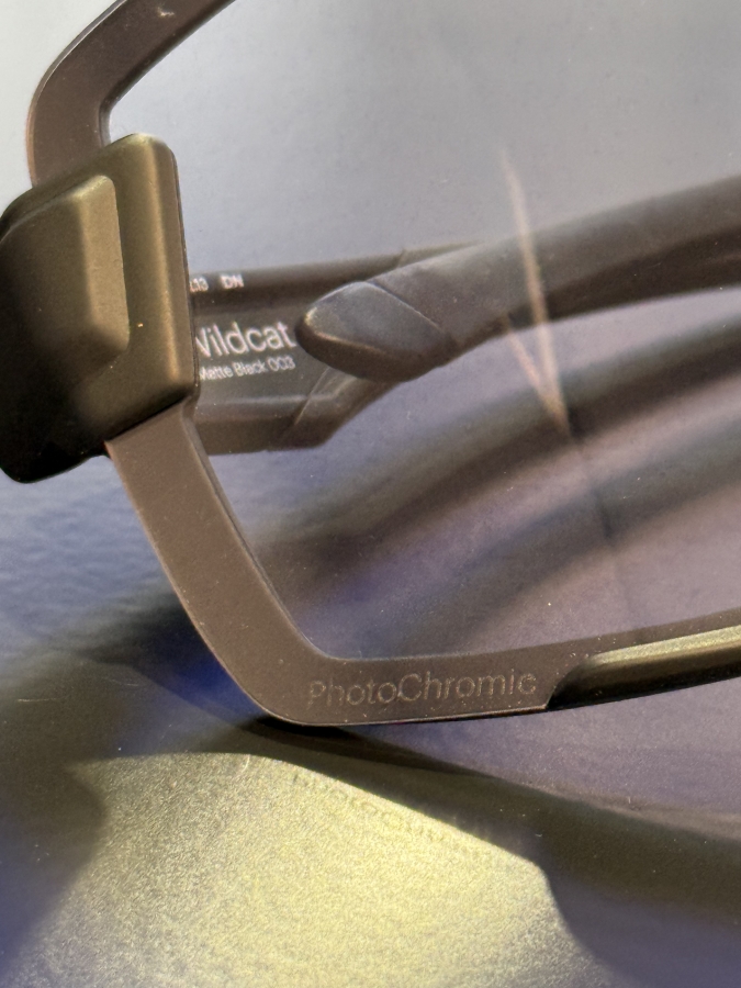 レンズにCHROMAPOP™PHOTOCHROMIC CLEAR TO GRAY VLT:77% ~ 17%を採用しています。