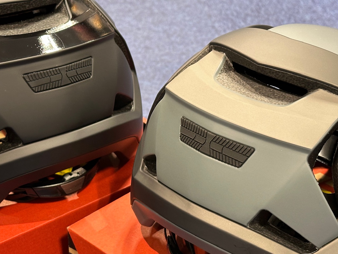 スキーやスノボのような、ゴーグルを使用したときにストラップがずれにくいように、ヘルメットの後ろにストラップの溝とゴムの滑り止めがあるのがロード用との大きな違いです。また後頭部まで深く覆われる帽体の形状も特徴の一つ。