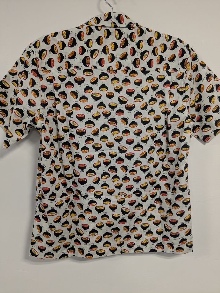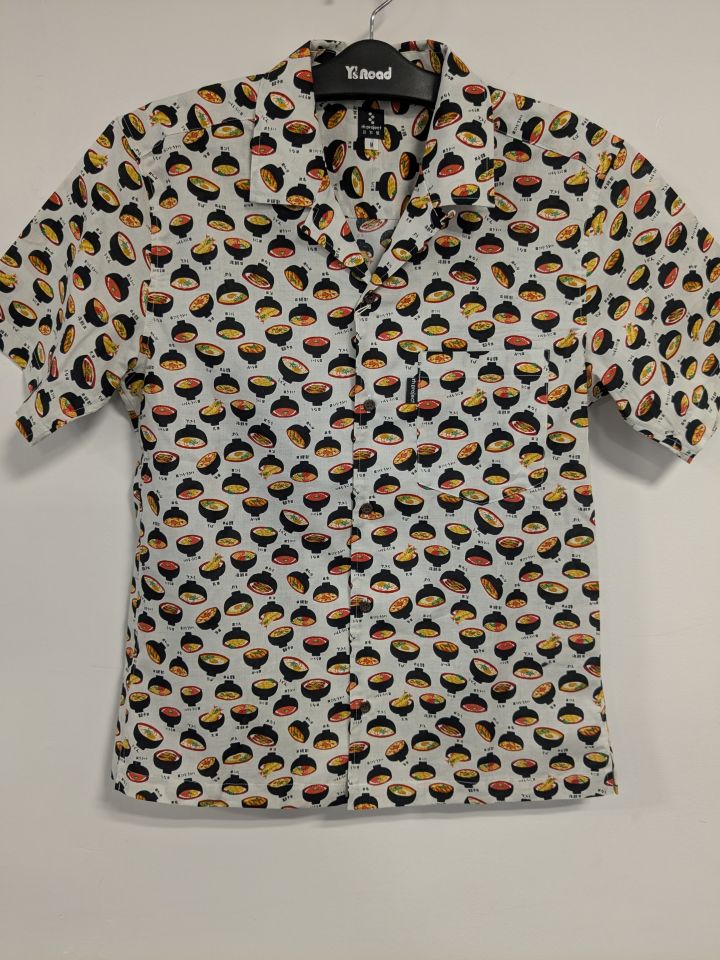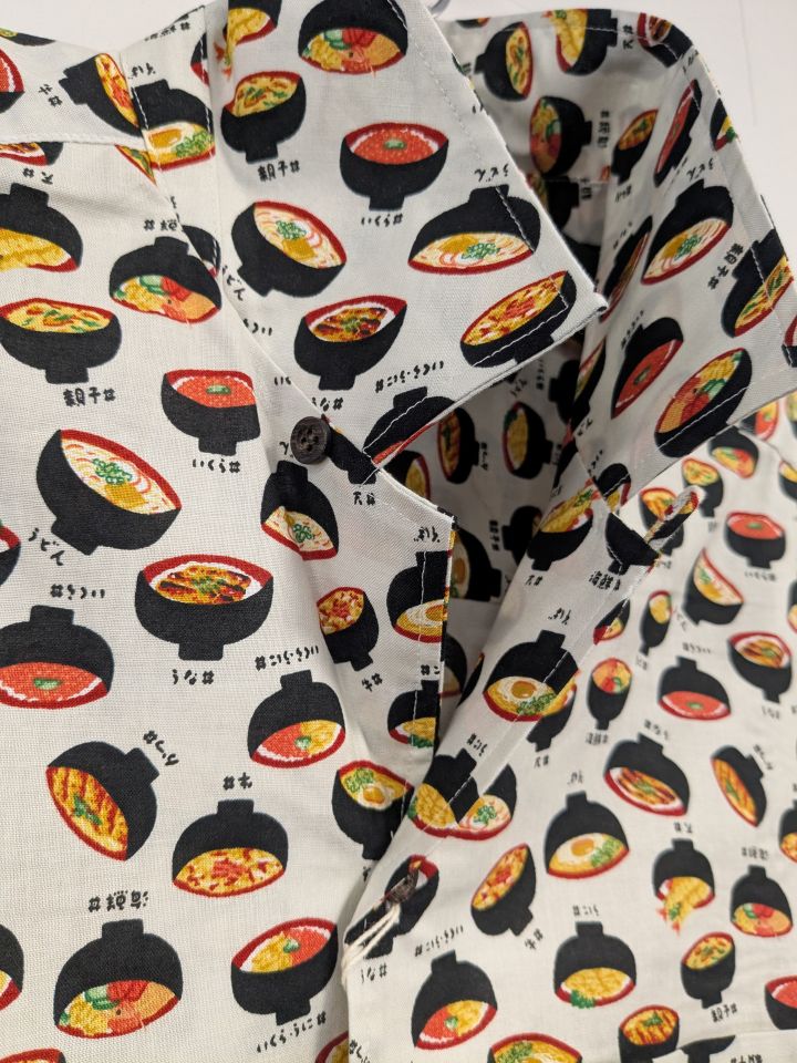 今年の柄は「どんぶり」ということで、いろいろな丼物がプリントされたアロハシャツになっています。