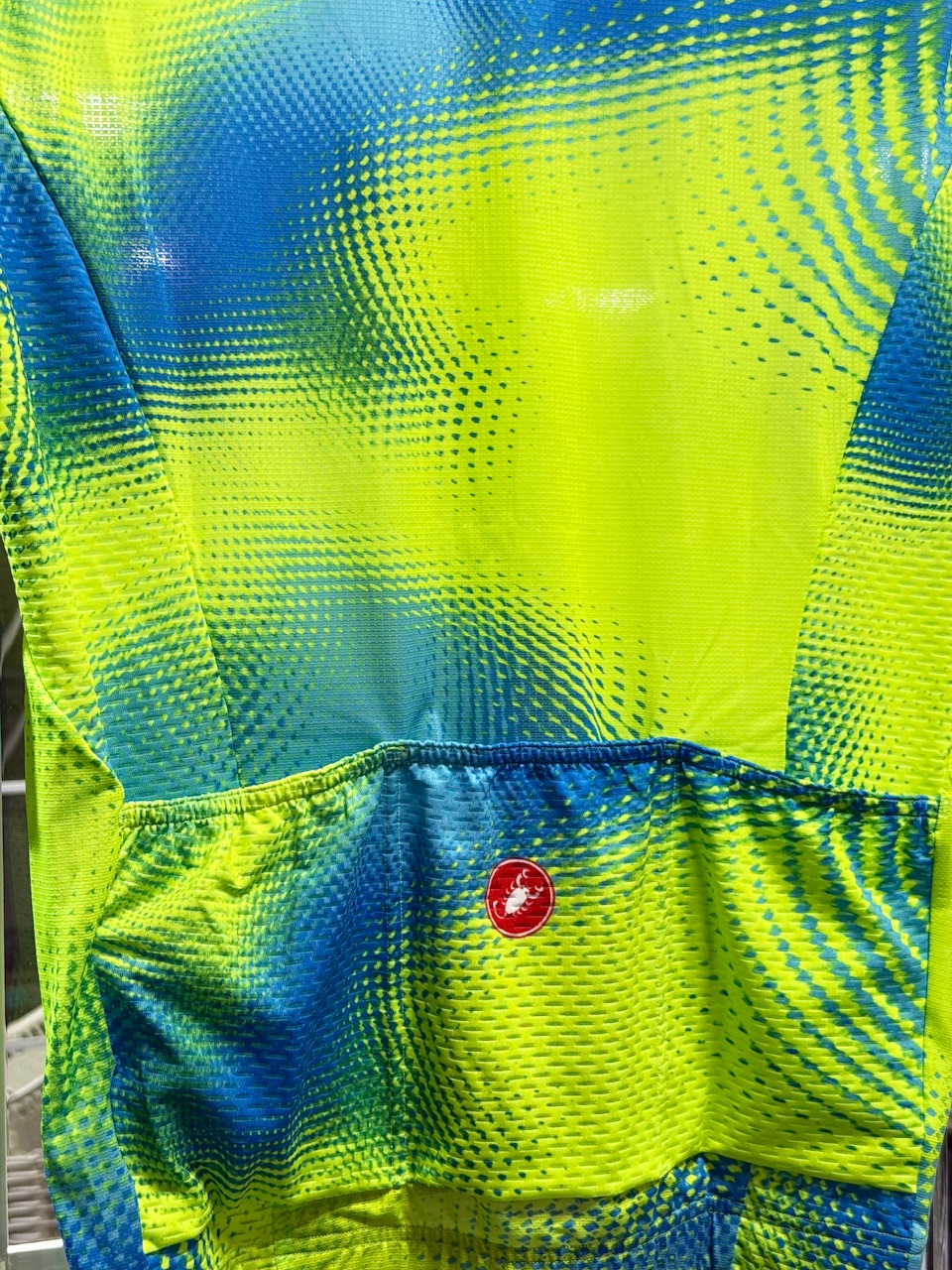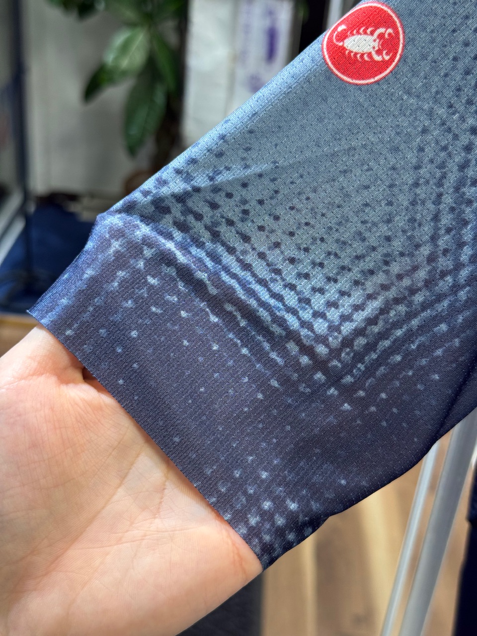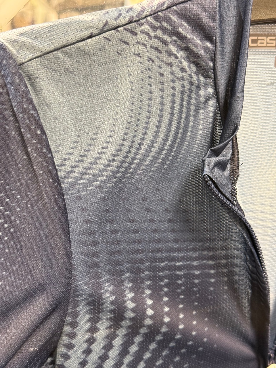 前身頃、後身頃、袖に通気性に優れた伸縮素材であるストラーダ・マイクロメッシュを使用してます。よーく見るとピンホールが空いています。これは涼しそうです。