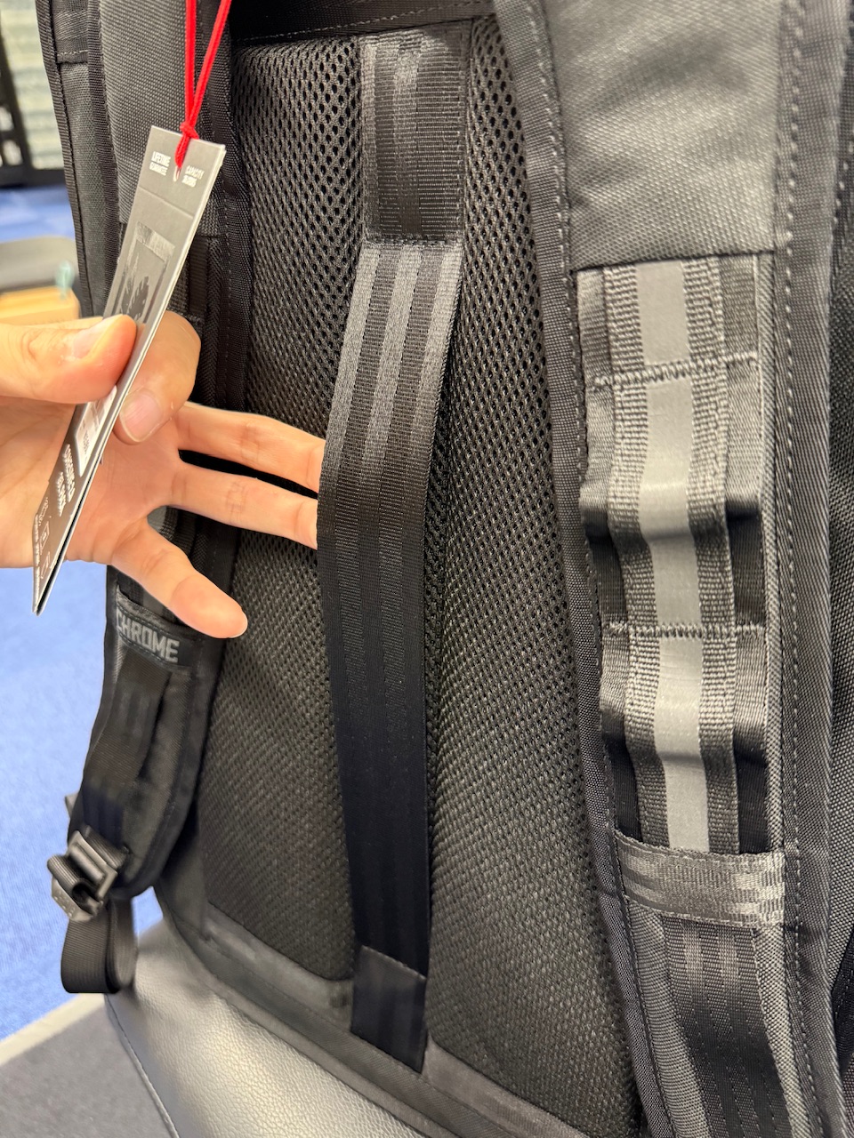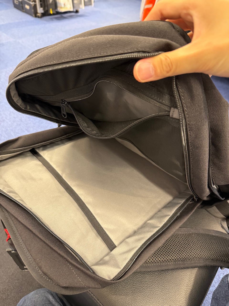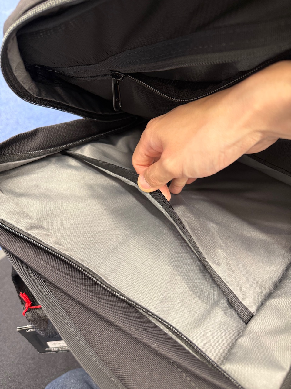 メインのエリアはメッシュのポケットとPCを入れるのに最適なポケットが付いています。テキストを入れるのも良さそうです。