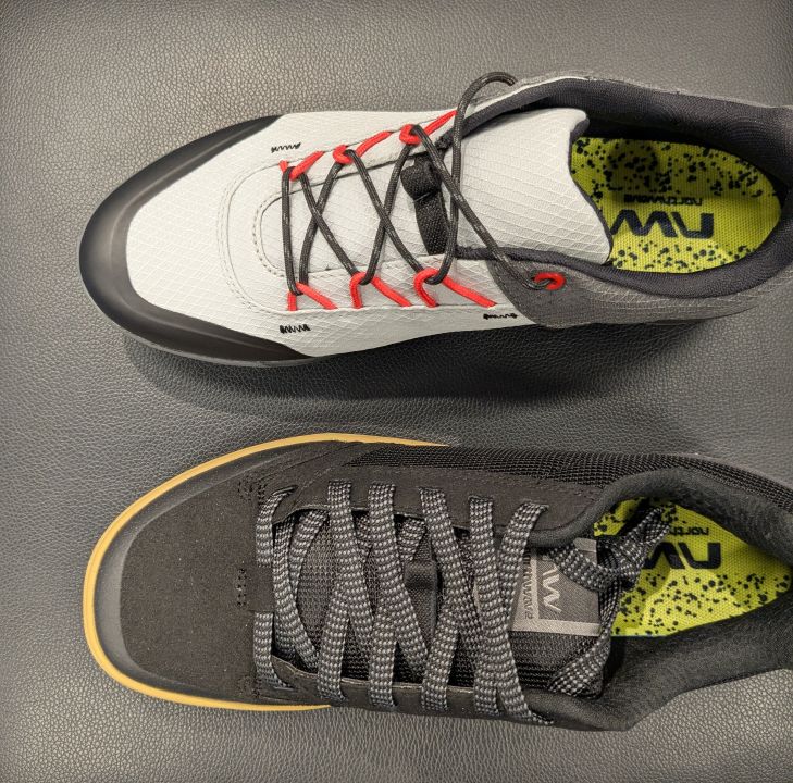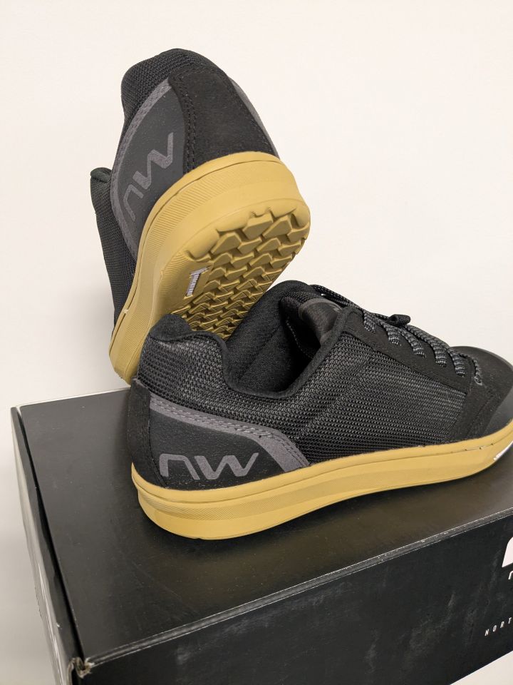 上野ウェア館ではシマノの「SH-ET501」をご用意していましたが、シマノ倉庫で在庫を切らしており再入荷まで3週間~1か月ほどかかりそうなことと、甲高の方ですと履きづらい傾向のシューズだったため、新たにNORTH WAVE(ノースウェーブ)のフラットシューズ「TRIBE 2」を在庫しました。
