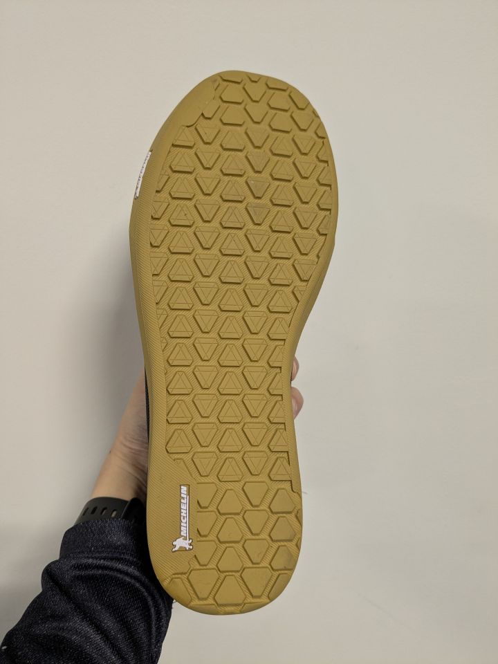 ミシュラン社と共同開発した、MICHELIN-NWコンパウンドを使用したアウトソールは高いグリップ力を持ちペダルとの相性も抜群。フラット面で踏みやすそうですね。