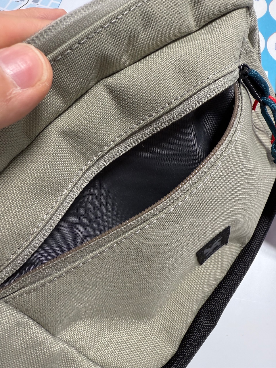 メインには小物の収納に便利なメッシュポケットが付いています。メッシュだと何がどこに入っているのか一目でわかるので便利です。メインジップは耐水仕様となっています。