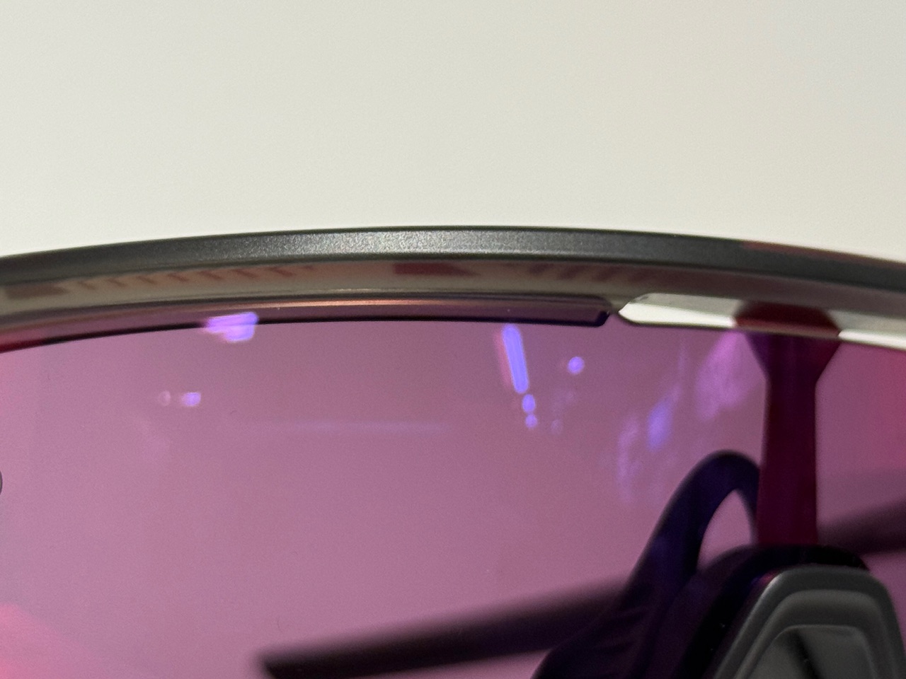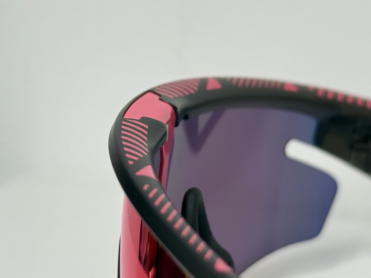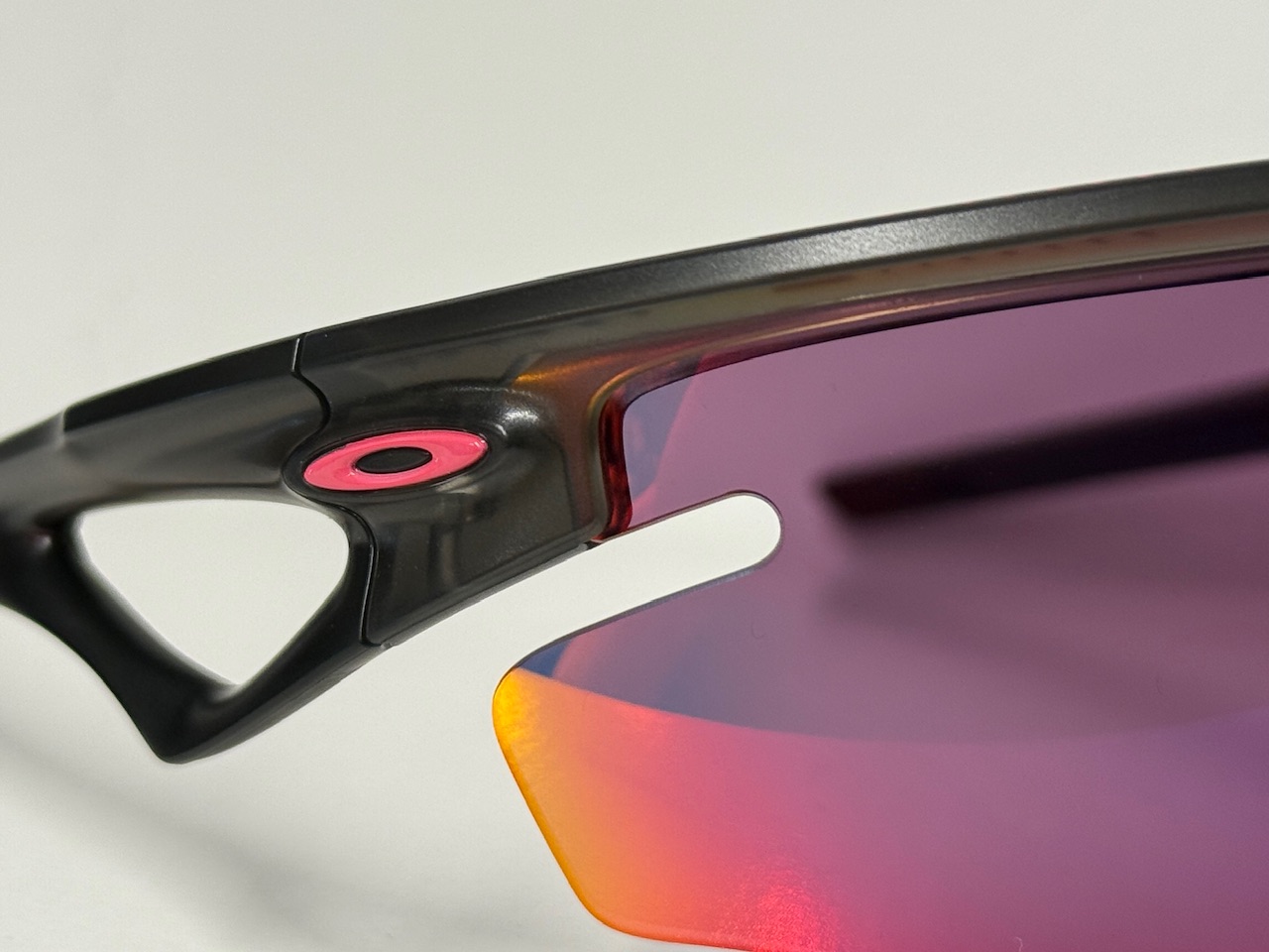 レンズはprizm roadを採用し、可視光線透過率: 20%でベース レンズ カラー: バラとなっています。赤みがかった視界で路面の凹凸をより鮮明に見せ、状況判断を助けます。OAKLEYのレンズは大きく湾曲していますが、視界の歪みを感じさせません。これにより長時間の仕様でも目から来る極端な疲労が発生しにくく、まるで裸眼の様なクリアな視界を実現しています。レンズの保護性能も高く、飛び石などで割れる心配はありません。UVカット機能はもちろん搭載しています。レンズにUVカット素材を練り込んで成形しているので傷がついてもその機能は持続します。私もOAKLEYを使っていますが他のメーカーに比べて歪みが少なく、掛けていることを忘れるほどクリアな視界には感動しました。