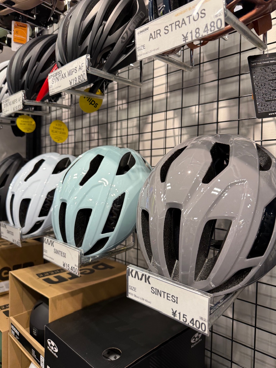 当店には初心者に人気のKASK SINTESI ¥15,400-を在庫しています!Mサイズで重量230gと軽量でおすすめです! 私は近場のサイクリングやお買い物用で使っています!