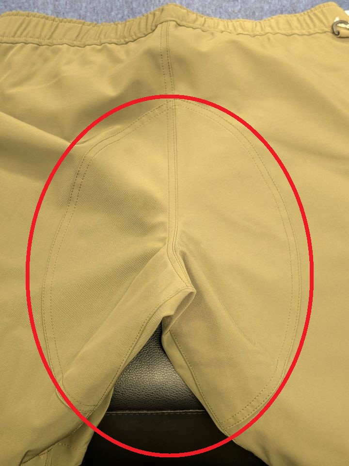 股にマチが設けられているので、サドルを跨ぐときに引っ掛かりにくく、着心地も良くなっています。