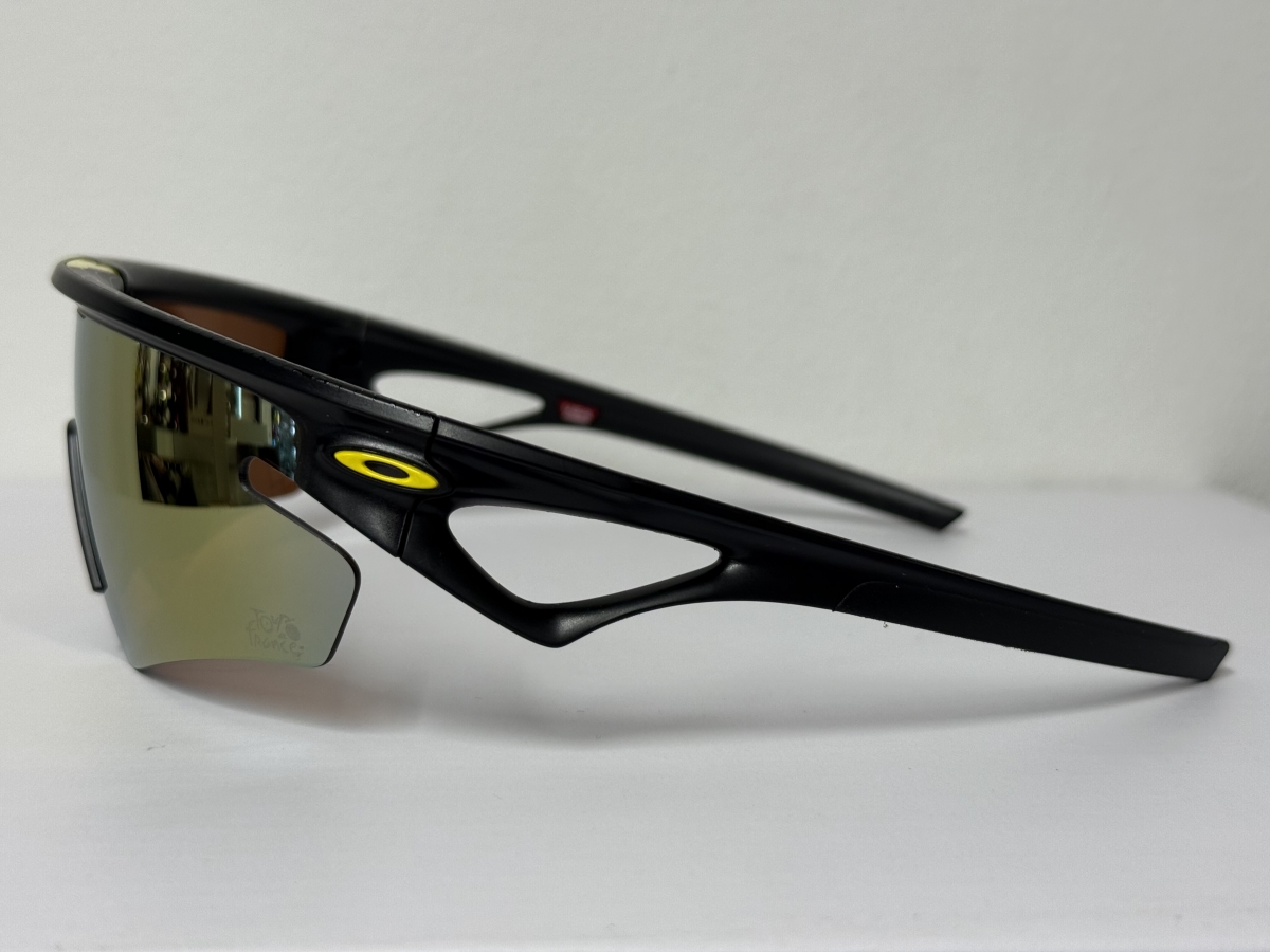ゴールドのレンズが目を引くデザインです。ツールドフランスらしくマイヨジョーヌの黄色が所々に使われています。レンズの右下にはツールドフランスのロゴもあります。
