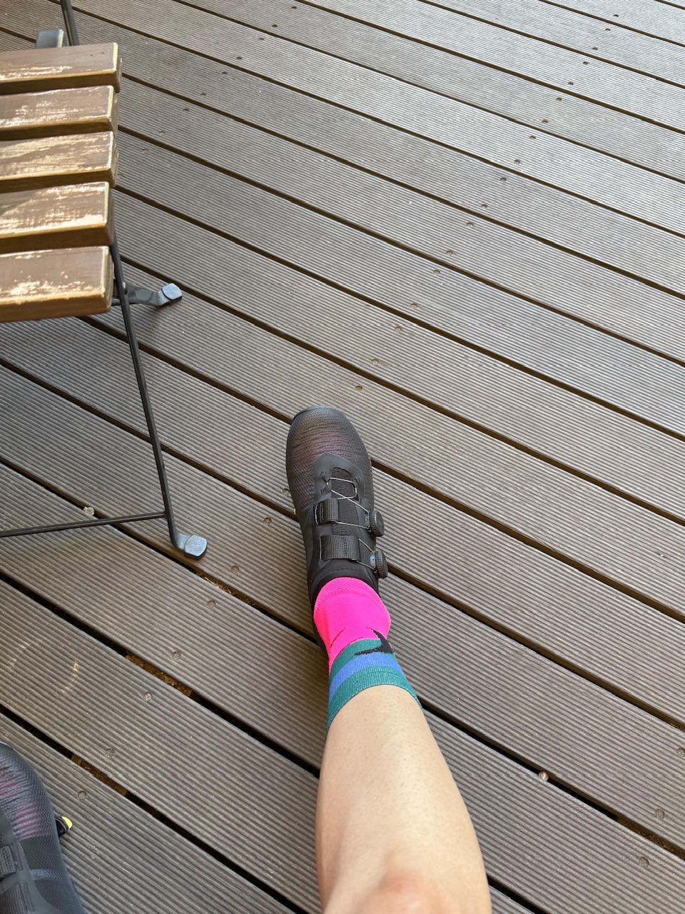 たまに使うシマノRC901と比べるとVENTO VEGA CARBONの方がスタックハイトが低く、よりダイレクトにペダルを踏める感覚でした。しかし、クリートエリアにグレーの少し柔らかい素材が入っているのでガチガチな剛性がお好きな方は少し気になるかもしれません。パワーの無い私にはむしろありがたい仕様でした。