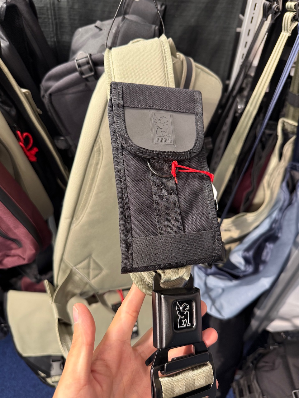 ほとんどのCHROMEバックに取り付け可能なフォンポーチです。CHROMEバックをお使いの方はこれがあればスマホの出し入れが楽になると思います。前面のリフレクティブパネルは夜間走行時に視認性を高めます。