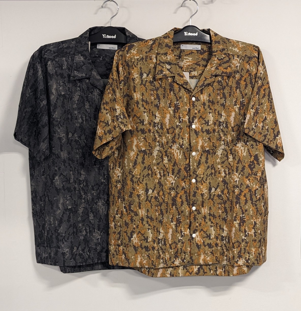 【narifuri】デジカモプリントが映える開襟シャツ