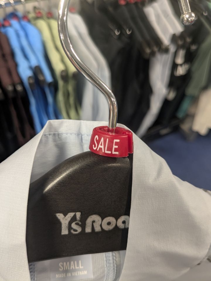 他にもセール対象商品ございます。ハンガーのセールチップが目印です。ぜひ上野ウェア館へお越しください。