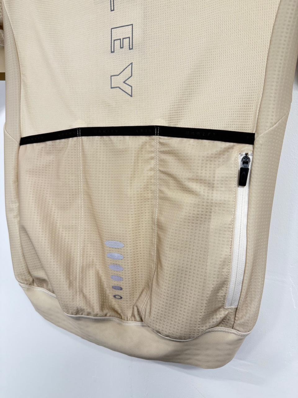 Enduranceという商品名だけあって、バックポケットは深く、多くの補給食が入りそうです。ジッパー付きポケットも便利そうです。
