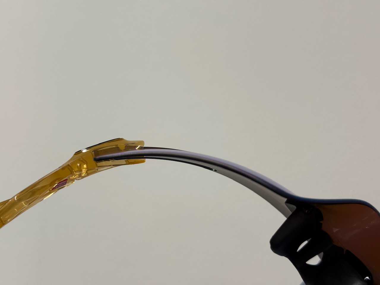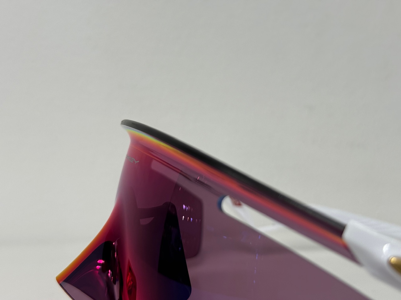 こんなにも変わったデザインですが歪みは少なく、OAKLEYらしいクリアな視界になっています。レンズの厚みが中心から外に向かって薄くなっています。これによりレンズの歪みを抑えています。