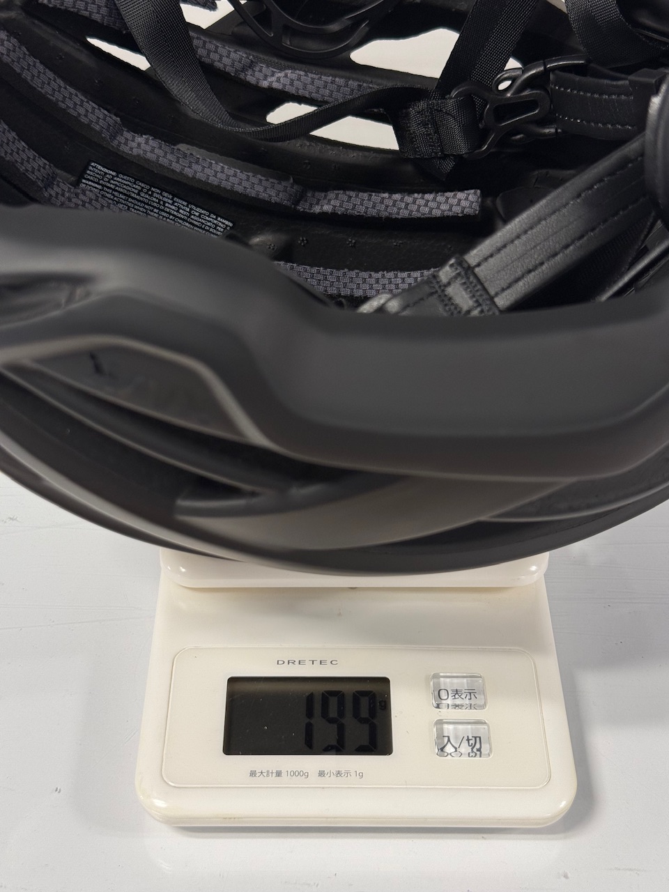 BLACK MATTカラー、Mサイズの実測値は199gとこれまた軽量なヘルメットです。