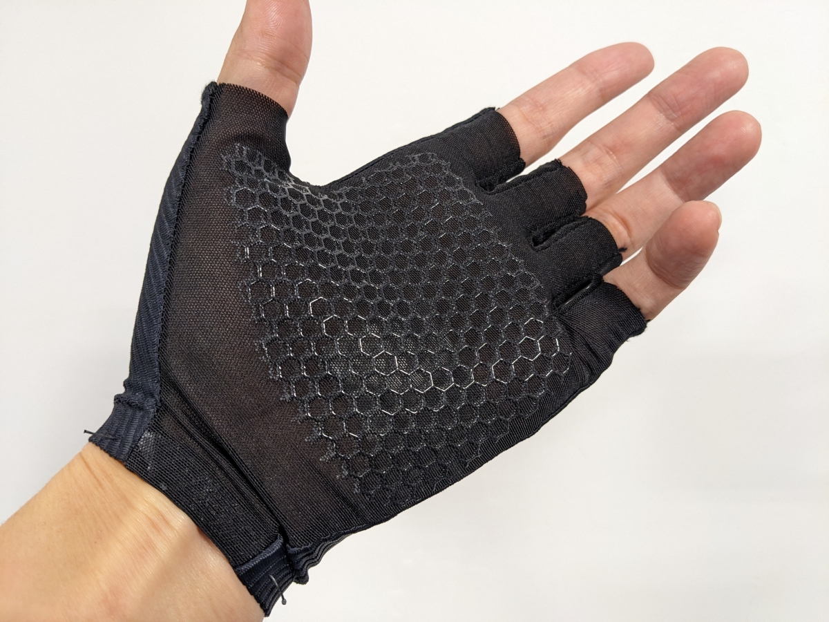 そして一番の推しポイントは手平。全面メッシュにグリッププリントという他にない組み合わせが最高です。涼しく、グリップ力高く、柔らかい着け心地…パッドが不要のシチュエーションならこのグローブ一択。