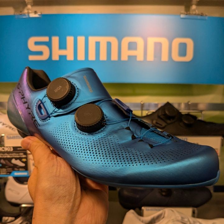 シマノのフラッグシップモデル「SH-RC903」でもホワイトが人気のため、上野ウェア館でもホワイトの在庫を強化中です。