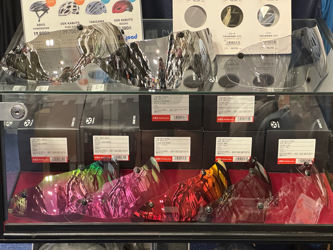 店頭ではシールドのご試着も出来ますのでカラーに迷ったらご来店くださいませ。