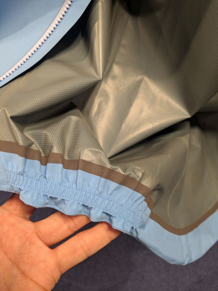 前モデルではドローコード式だった裾はゴム式へ変更されています。