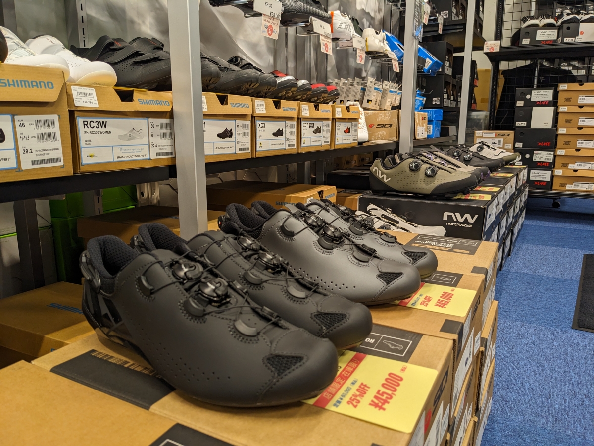 プロを支えるハイエンドシューズが店頭在庫限定で25%OFFというまたとない機会になっています。各一足ずつの入荷で、なくなり次第終了です。ぜひ上野ウェア館でご相談くださいませ。