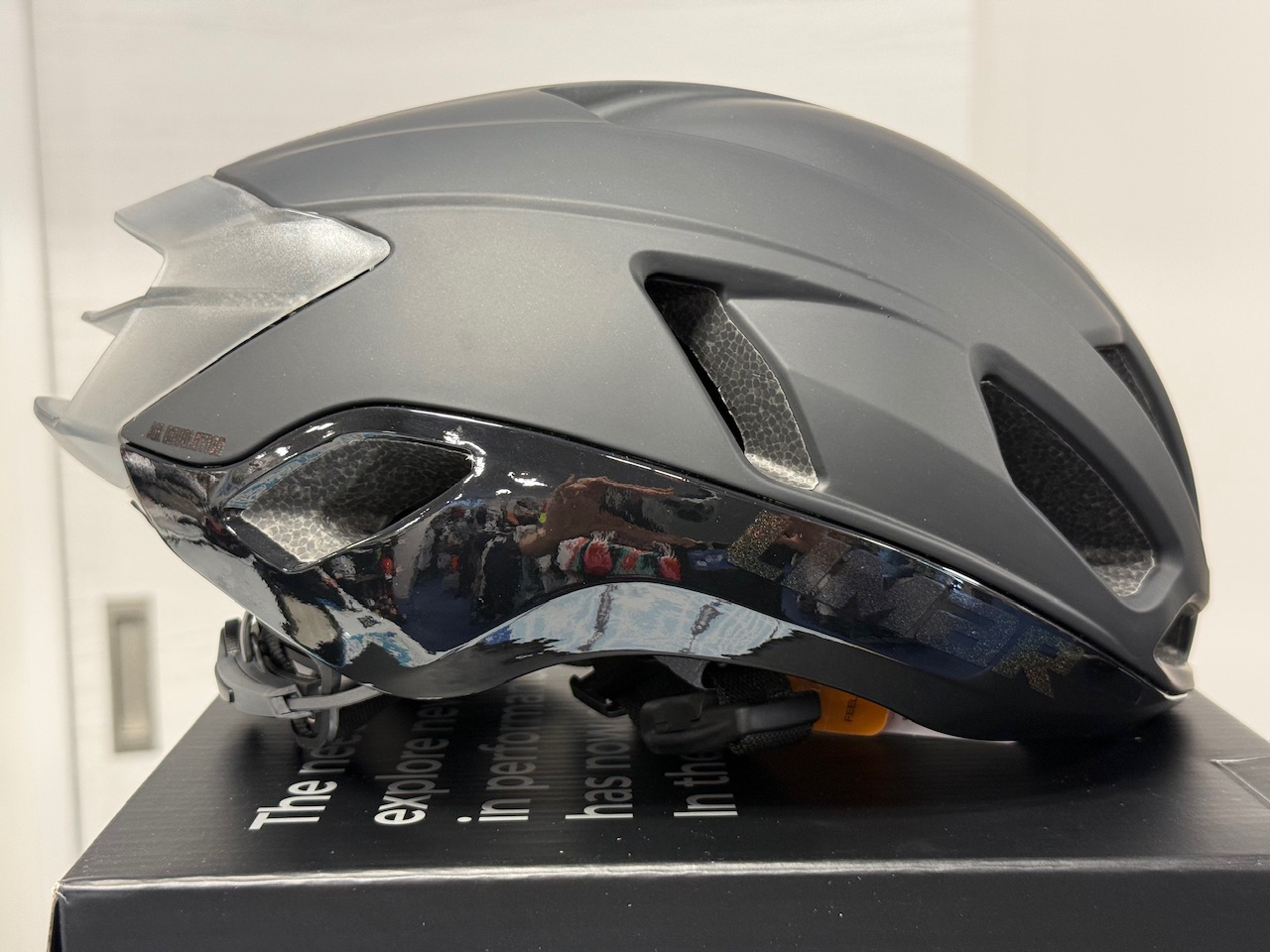 イタリアンブランドLIMARのエアロヘルメットです。エアロモデルですがMサイズで235gと非常に軽量なヘルメットとなっています。エアロダイナミクスを更に向上させるUFOというパーツが付属し、本体のテール部分に取り付けが可能です。さらに片手で素早く着脱可能な Fidlock マグネットバックルを採用しています。
