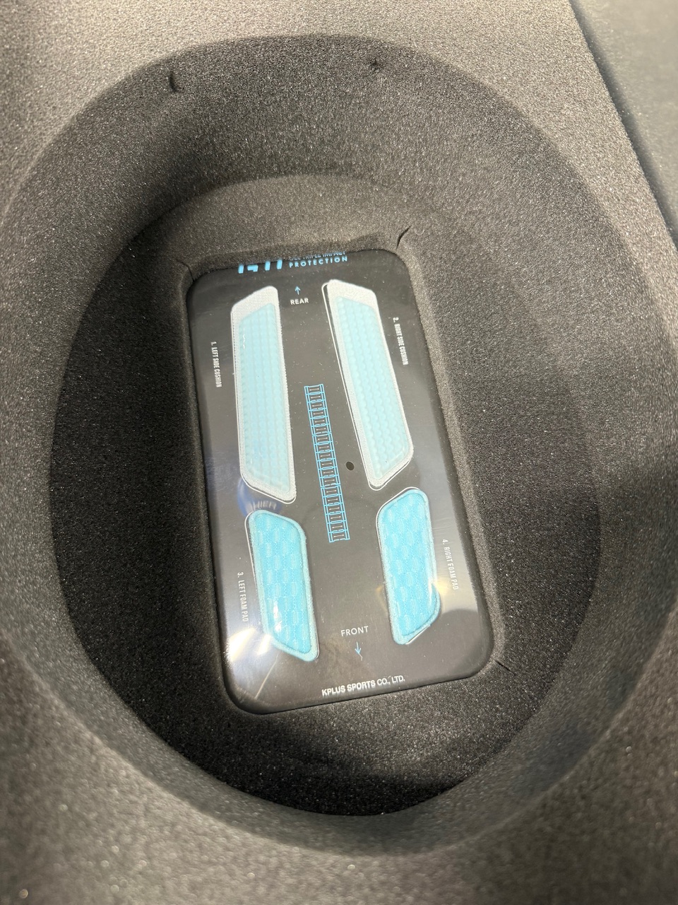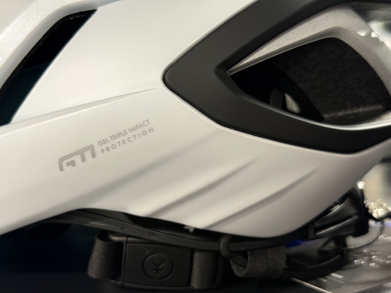 KPLUS独自の安全技術で、異なる密度のEPS(発泡ポリスチレン)をヘルメット各部に戦略的に配置。衝撃を効果的に吸収・分散する複合密度構造です。