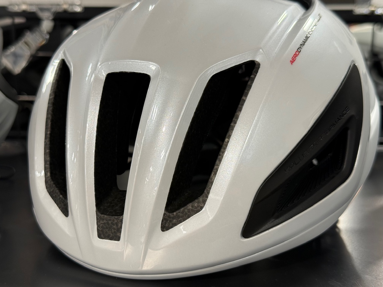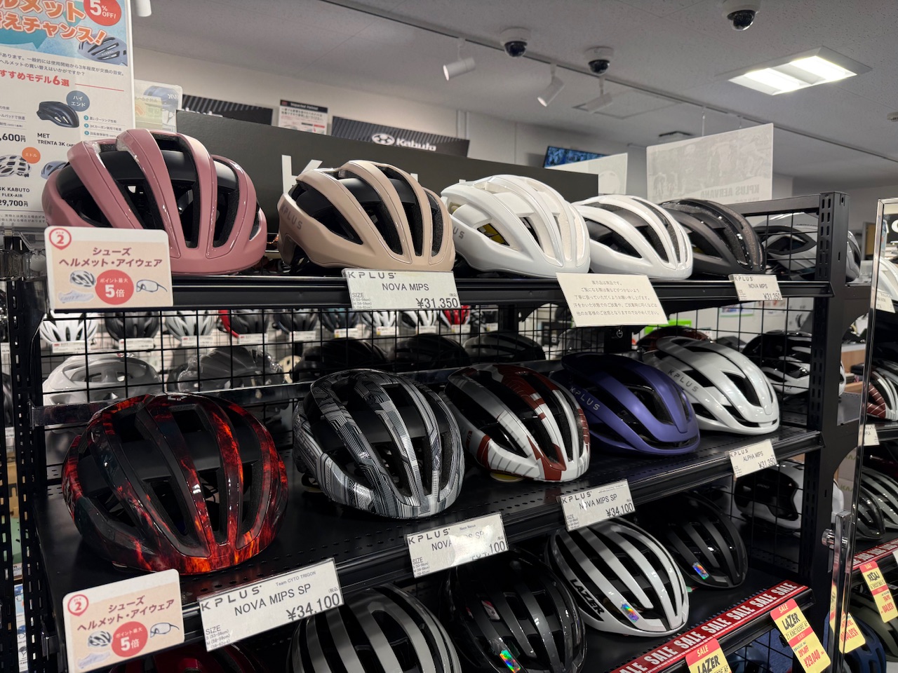 上野ウェア館では1週間前に発表されたばかりのKPLUS新作のエアロヘルメット「AERVANA」をすでに在庫しています!SNSでインフルエンサーの方が着用していてずっと気になっていましたが遂に現物を見ることができました。