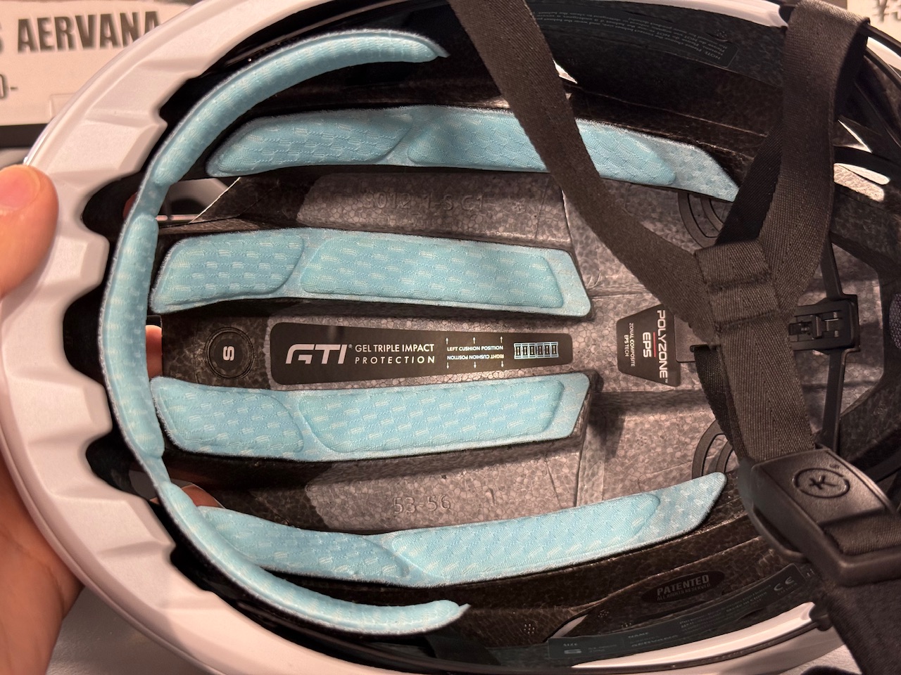 頭頂部のパッドは交換可能で、涼感・抗菌の Coolmax® freshFX か、衝撃吸収・圧力分散の GTIクッションを選べます。