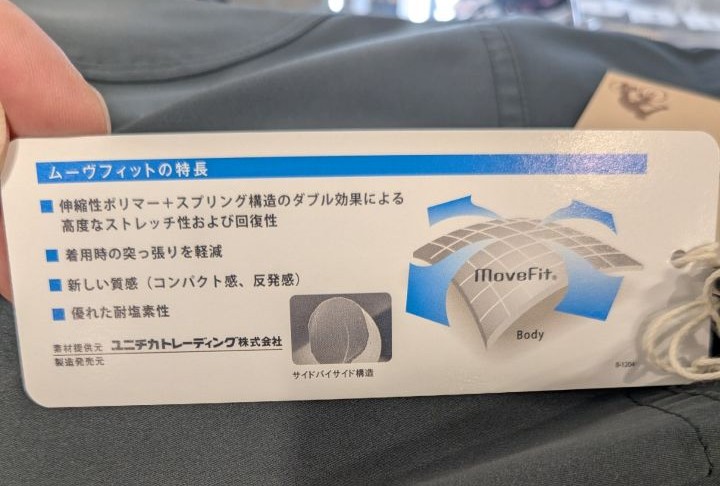 ユニチカトレーディング㈱のMoveFit®を採用しています。Mサイズで約270gと軽量です。