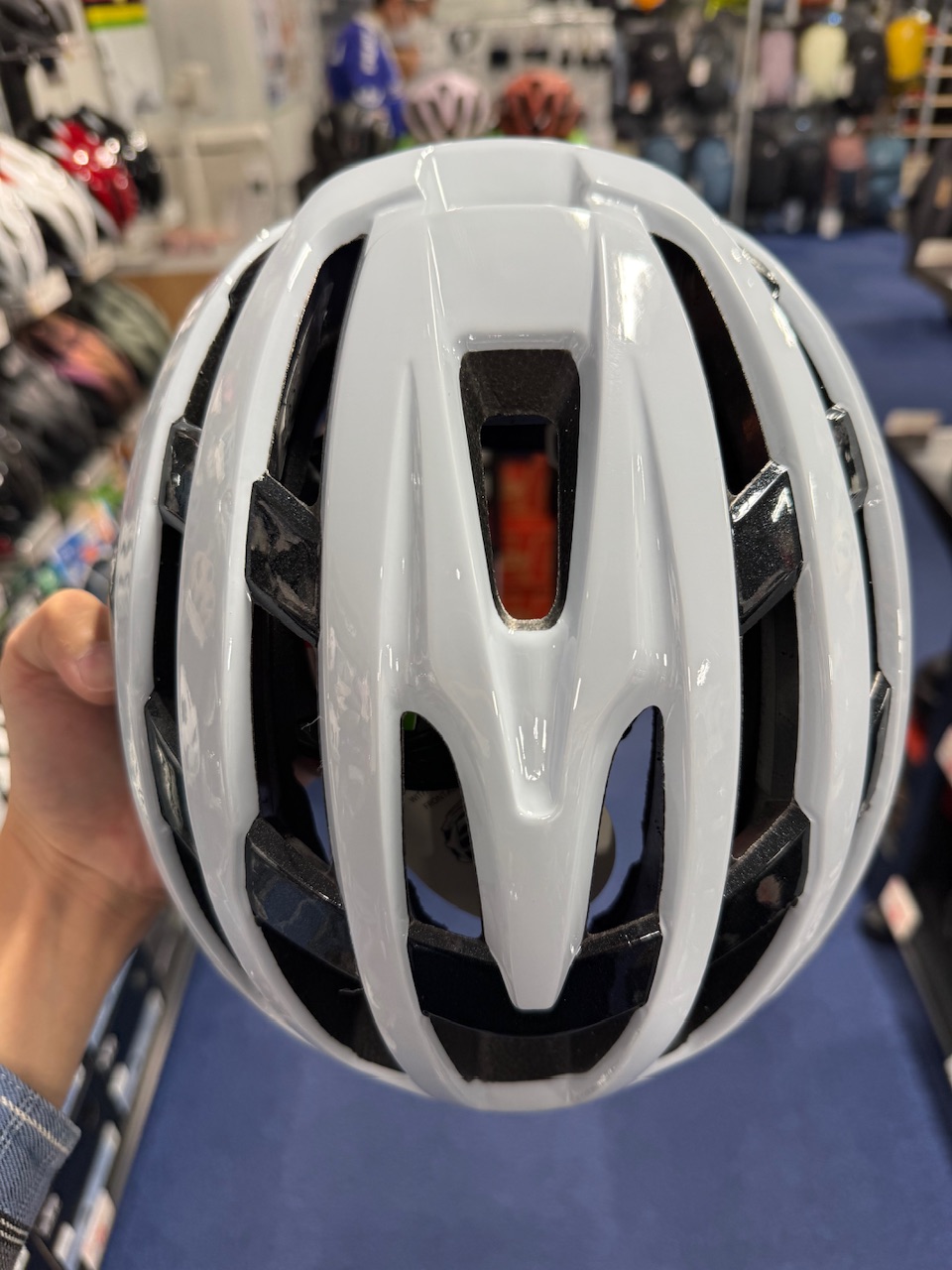 Mサイズで重量200gの超軽量ヘルメットです。ヒルクライムと言えばこのヘルメットというイメージがあるVALEGROは低速時でも高い通気性を発揮します。スピードをあまり出さない街乗りでも快適です。今回入荷したホワイトは夜間でもアピール力が高いので日が落ちるのが早くなった今の時期におすすめです。