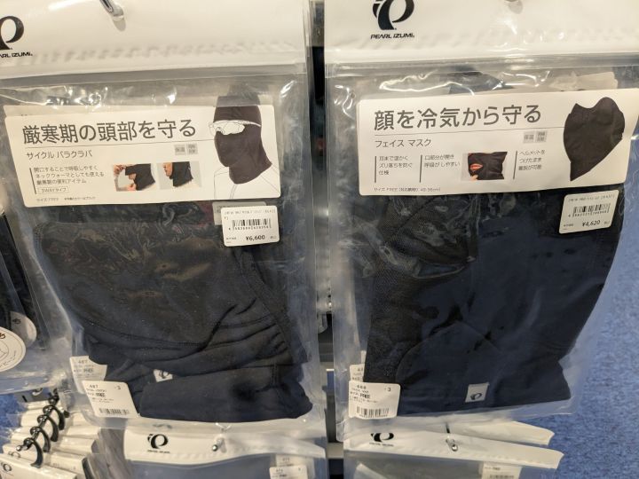 顔から首をガードする「フェイスマスク」や、首から上を全てガードする「サイクルバラクラバ」もご用意しています。まだ着けても暑いかと思いますが、厳冬期の寒さにいかがでしょうか?