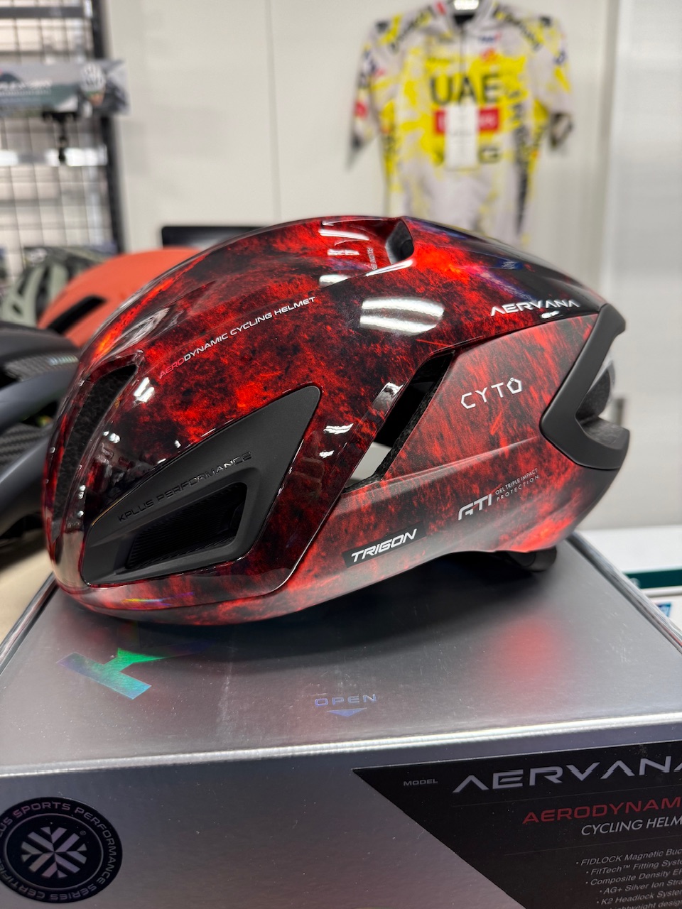 “Team CYTO TRIGONデザインは、「溶岩」をモチーフに、地中深くに眠るエネルギーが地表へと噴き上がる瞬間を描き出しています。その力強い動きを、極限に挑むライダーの躍動と重ね合わせ、“新たな始まり”と“限界突破”を象徴するグラフィックへと昇華しました。挑戦を続けるライダーの内なる力を呼び覚ますデザインです。”代理店様説明文引用