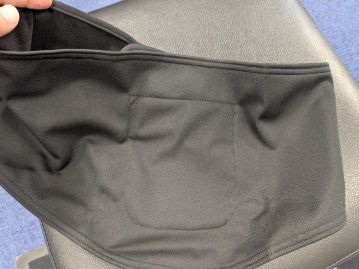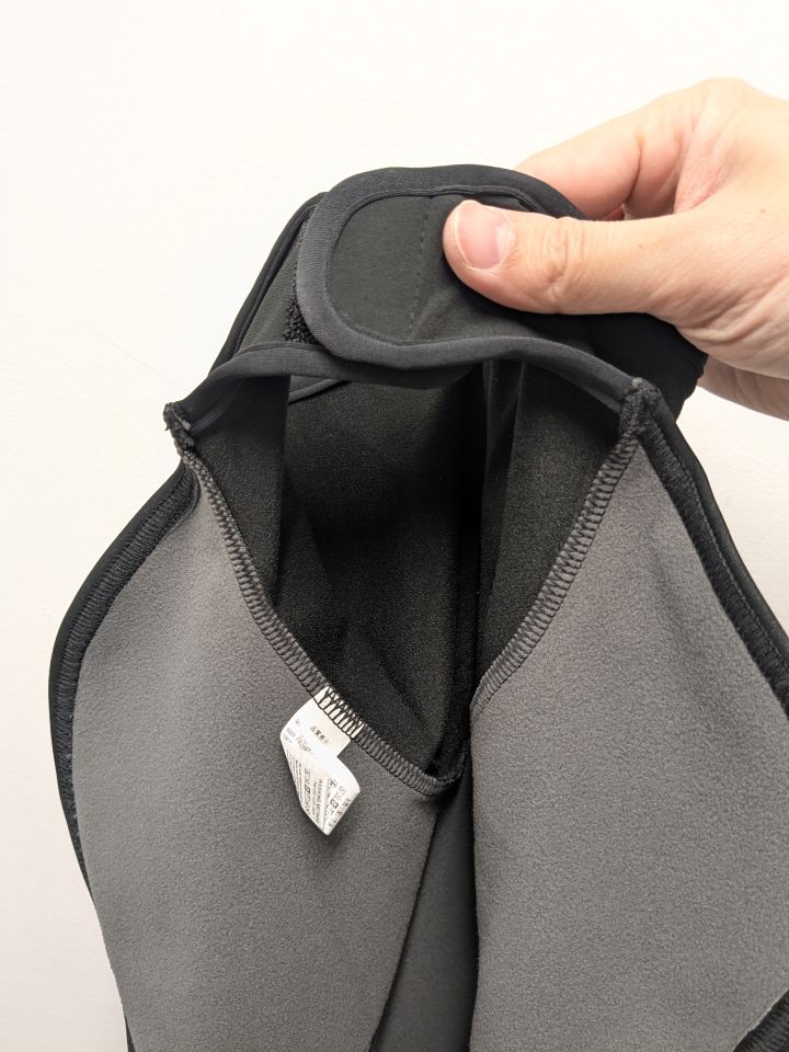 首から前面の保温力を上げる便利アイテム。首回りにベルクロが付いているだけなので、ジャージの内部に入れ込むように使用します。