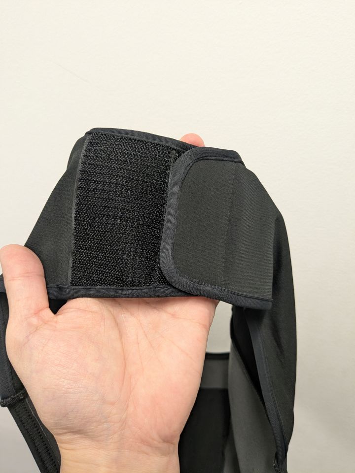 いわゆる腹巻ですが、寒風の当たる前面は裏起毛の防風素材を使用し、サイドからベルクロ部分まではストレッチ性の高い生地を使用しています。